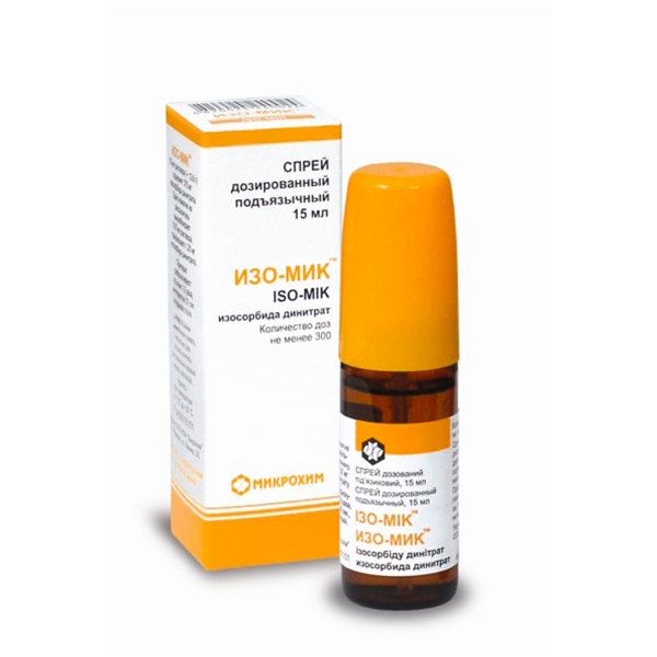 После распыления в полости рта препарат быстро всасывается и начинает оказывать гемодинамический и антиангинальный эффект через 2-5 мин (т.е. купирование приступа стенокардии наблюдается через 2-5 мин после приема). Максимальная концентрация активного вещества в плазме крови достигается через 5-6 мин. Максимальный эффект после впрыскивания препарата ИЗО-МИК наступает на 10-15-й мин. Изосорбида динитрат метаболизируется с образованием активного метаболита изосорбида-5-мононитрата, период полувыведения которого составляет 5 ч, а также изосорбида-2-мононитрата с периодом полувыведения 2,5 ч. Период полувыведения изосорбида динитрата при сублингвальном применении препарата составляет 1 ч. Период полувыведения может удлиняться при курсовом применении препарата. От 80 до 100 % введенной разовой дозы выводится с мочой в течение 24 ч, преимущественно в форме метаболитов.
