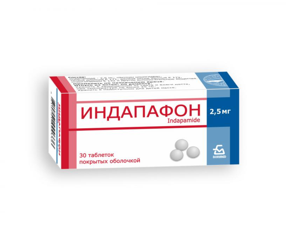Сосудорасширяющие эффекты и снижение общего периферического сосудистого сопротивления имеют в своей основе следующие механизмы: снижение реактивности сосудистой стенки к норадреналину и ангиотензину II; увеличение синтеза простагландинов, обладающих сосудорасширяющей активностью; угнетение тока кальция в гладкомышечные клетки сосудов. Гипотензивный эффект развивается через 7-10 дней после начала приема Индапафона и достигает максимума через 3 мес регулярного приема препарата. Индапамид редуцирует гипертрофию левого желудочка. При применении Индапафона в терапевтических дозах диуретическое действие значительно уступает его сосудорасширяющему эффекту.