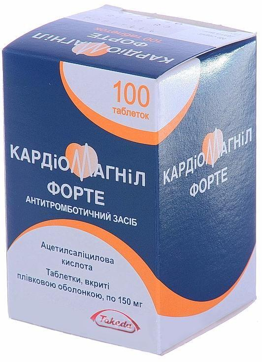 Профилактика повторного инфаркта миокарда и тромбоза кровеносных сосудов 1 таблетка Кардиомагнила, содержащего АСК в дозе 75 - 150 мг 1 раз в сутки.