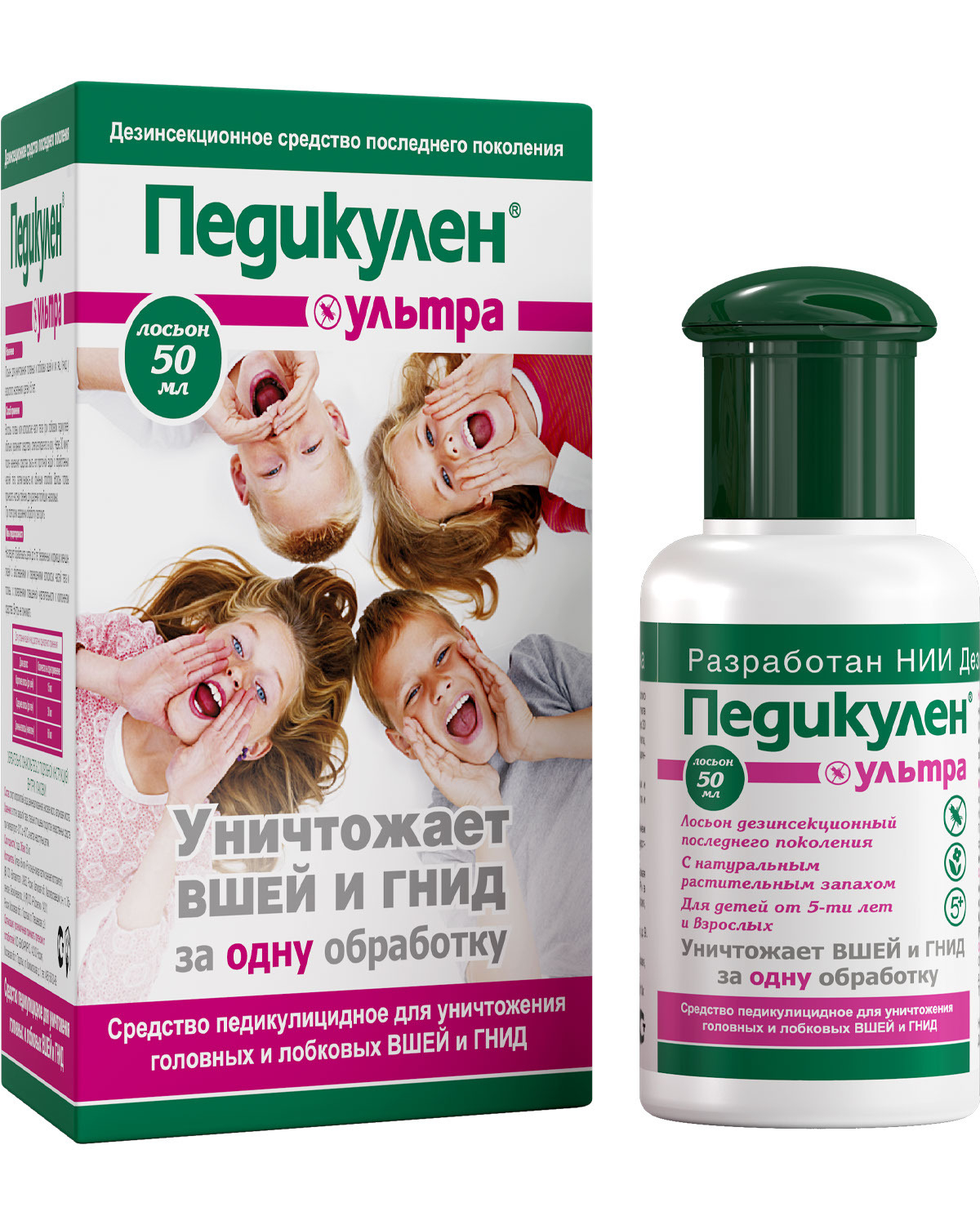 Педикулен ультра – дезинсекционное средство, уничтожает вшей и гнид за одно применение.