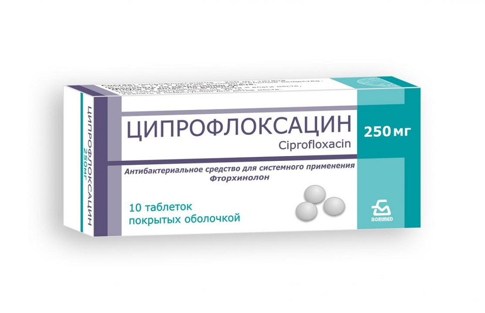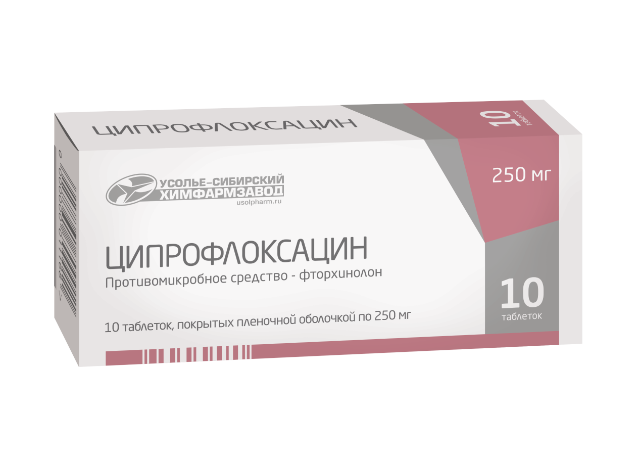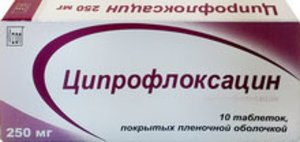 1 таблетка содержит ципрофлоксацина гидрохлорида в пересчете на ципрофлоксацин 250 мг;